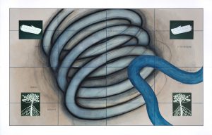 Image credit: Carol Mickett and Robert Stackhouse, Currency: Climate Exchange, 2008 & 2021, Watercolor, acrylic, charcoal, and ink on paper mounted on canvas, 118 x 180 in. Courtesy of the artists.