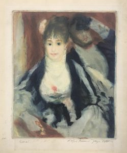 Image Credit: Jacques Villon, La Loge (After Renoir), 1928, color aquatint, 10 ¾ x 8 ¾ in., Leepa-Rattner Museum or Art, St. Petersburg College, Gift of Cecily Mosier, 2018.6.1. Villon © 2021 Jacques Villon / Artists Rights Society (ARS), New York / ADAGP, Paris.