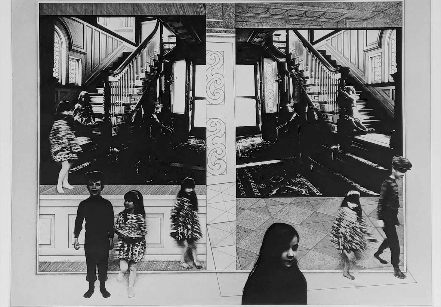 Image: Peter Milton, Card House, 1975, resist-ground etching and engraving, and direct photographic transfer, 21 1/2 x 27 1/2 in. Courtesy of Eckerd College.