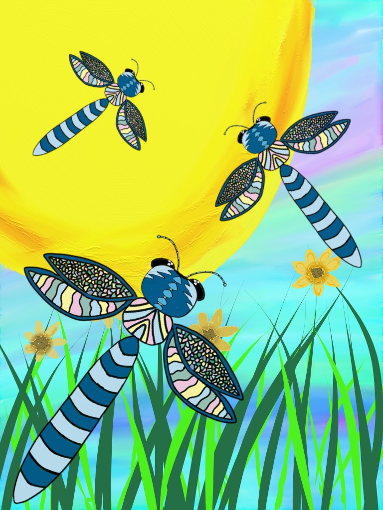 Image: Scarlett Glazman (3rd Grade), Dragonflies in Flight, Digital art