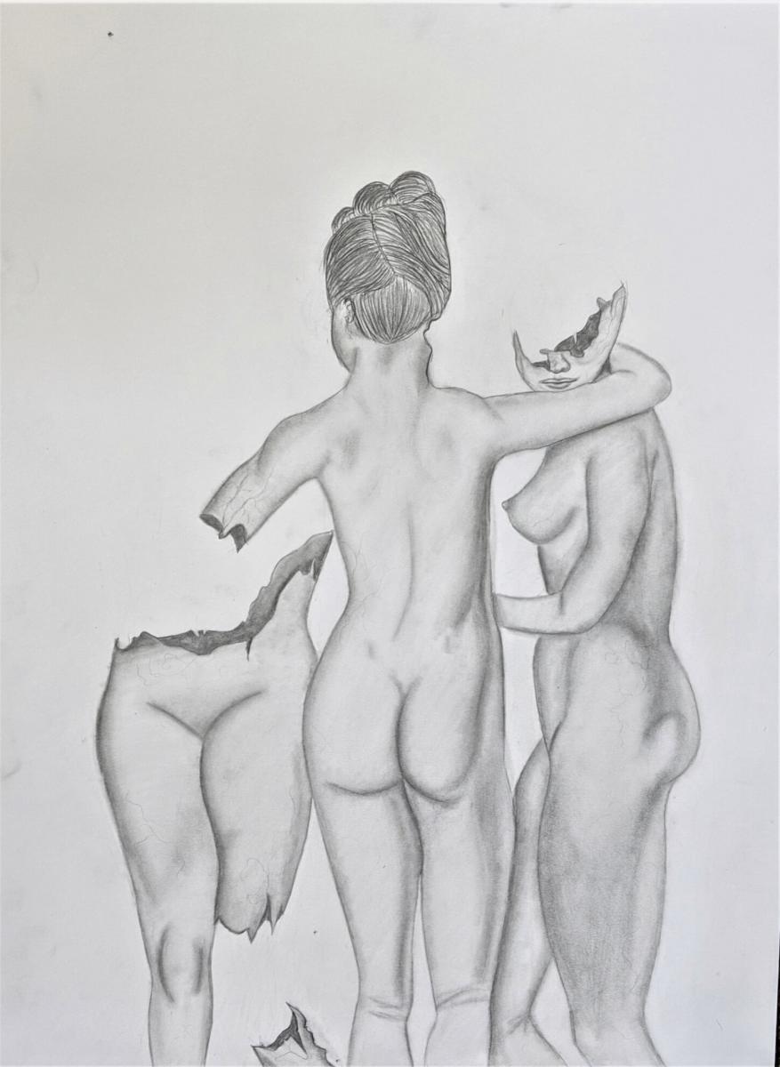 Drawing II presents students the opportunity for an in-depth study of drawing with an emphasis upon classical drawing ideals and techniques as they pertain to the depiction of the human figure and organic form. Taught by Linda Berghoff, these works are reflective of the time and the individual artist.