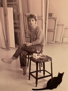 Chase also had her first solo exhibition in New York City that year, which featured a sculptural installation of her “floor pieces” at Artists Space, a gallery in Soho. Degree in hand, she immediately moved to Manhattan and became a rising star in the downtown art scene in the late 1970s and throughout the 1980s. In her studio at 185 Lafayette Street, she produced a prolific body of work that explored expressive mark-making and symbolic imagery through painting and printmaking, including woodcuts. During that time, she taught painting at the Rhode Island School of Design, commuting from Manhattan to Providence from 1975-79, and at the School of Visual Arts in Manhattan from 1980-82.